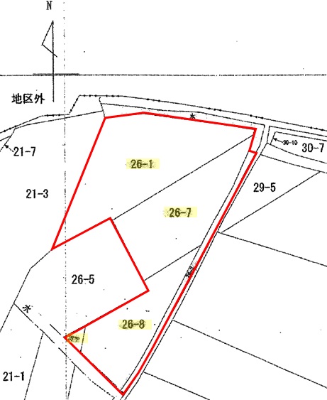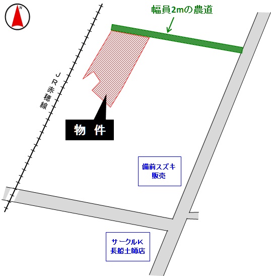価格改定しました。200坪以上の広く日当たりの良い土地です。 北側にある幅員2mの農道に接道。その北側にある10区画の分譲団地(弊社売主)と階段でつながっているため、分譲団地内にある駐車場を行き来出来ます。 |